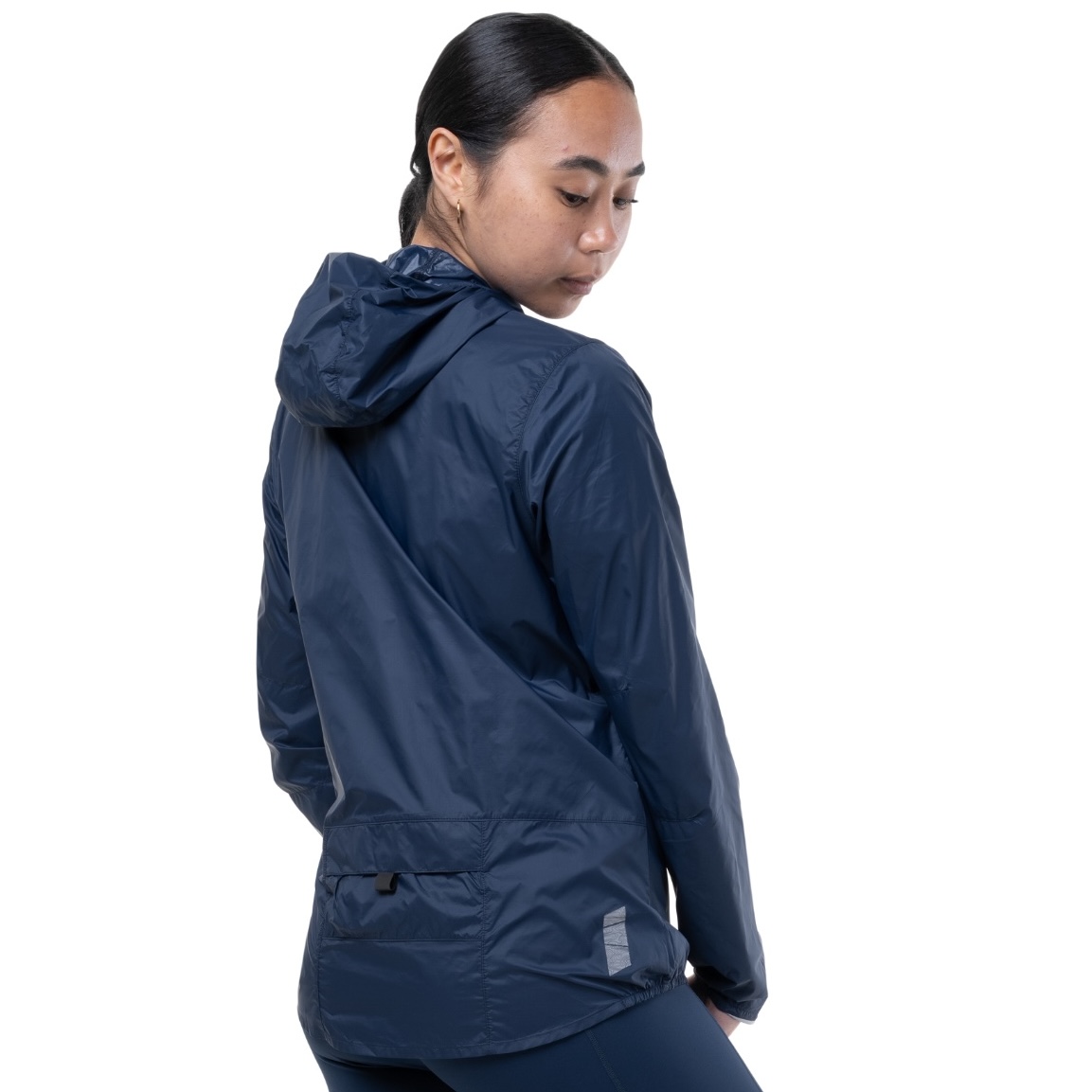 Jakken er vindtett og puster svært godt. Den er dessuten vannavstøtende og kommer med sammenrullbar hette som ikke merkes når den ikke er i bruk.