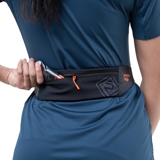 Et lite, men romslig løpebelte. Du får med deg telefon, gels og andre småting og beltet sitter stødig og stabilt.