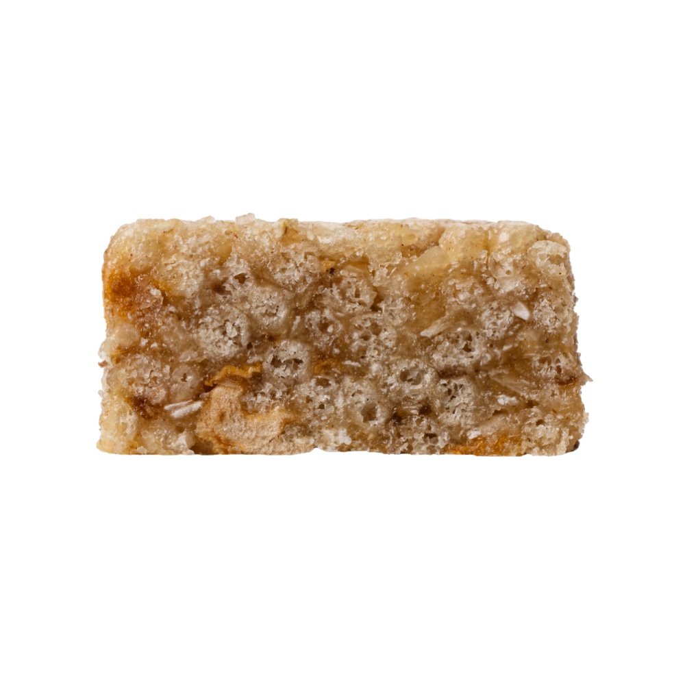 SQUEEZY Energibar Eple inneholder kun naturlige og vegetabilske råvarer. En bar inneholder 36,7 g karbohydrater, 2,2 g proteiner og kun 2,9 gram fett. Det gir en bar med raskt og effektivt næringsopptak – også ved høy puls. Den er lett å tygge og svelge og selvsagt uten sjokoladetrekk.